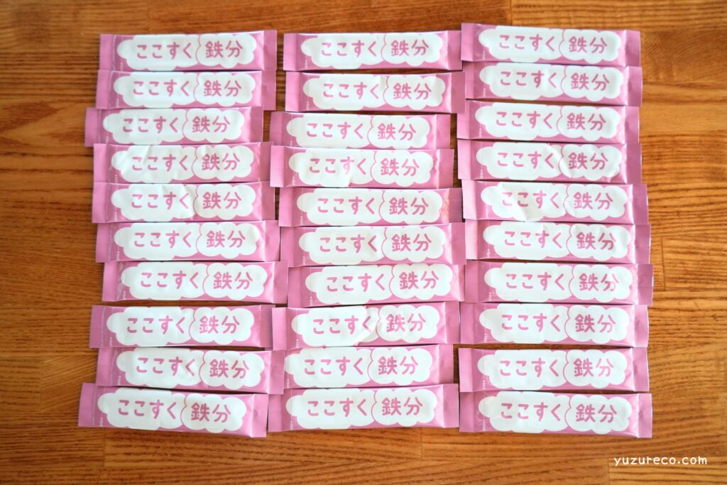 ここすく鉄分の個包装の写真。1袋に30包入っている。