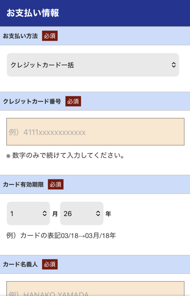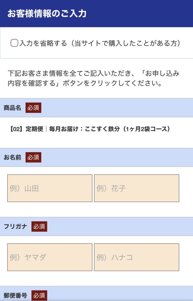 公式ストアのページ下部より、氏名や住所など、必須項目を入力します。