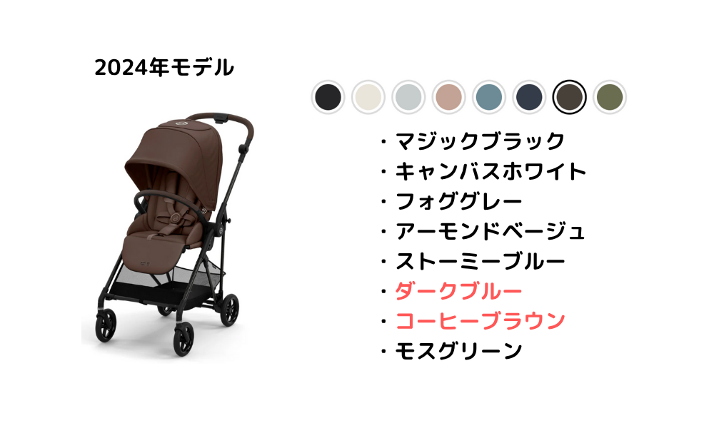 「ダークブルー」「コーヒーブラウン」は2024年モデルのみです。